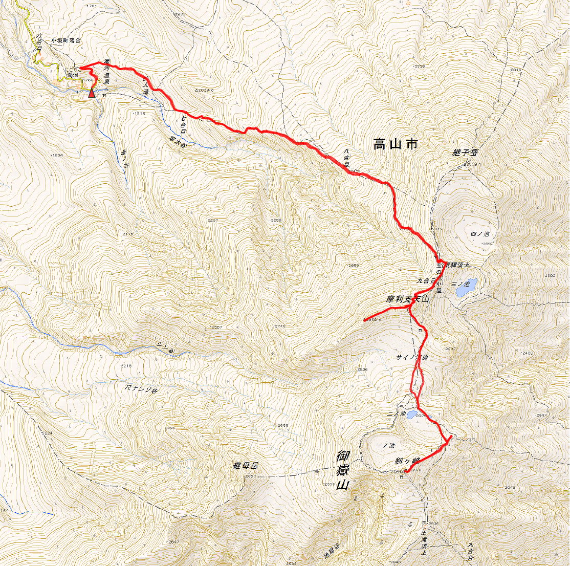 −二ノ池本館(12:04/12:45)−摩利支天山(13:48)−五の池小屋(14:38)−のぞき岩避難小屋(15:48)−小坂口登山口(17:06)