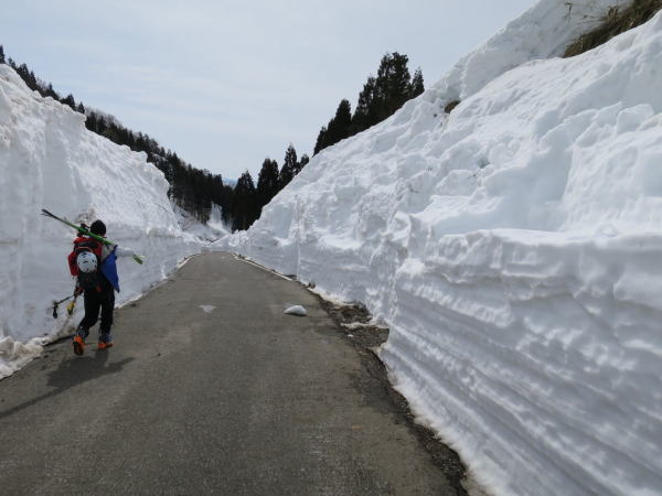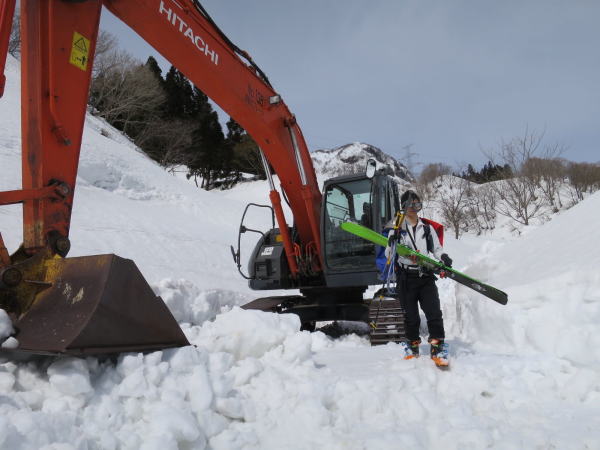 | 先週の訪問から更に除雪作業は進んでいて、林道から台地への取り付きまで除雪されるのは間近かと。 |