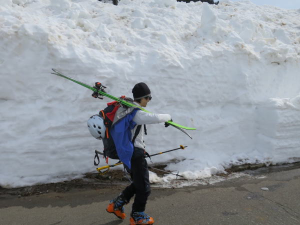 | 雪面へのクラック、部分的に凍った雪面に注意して滑り下りた。 |