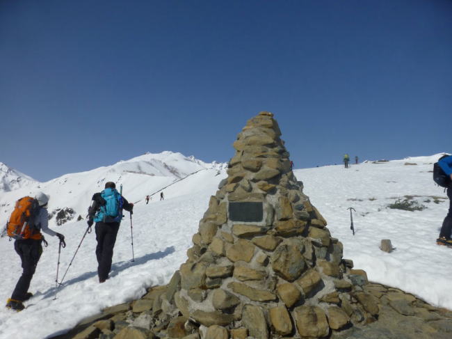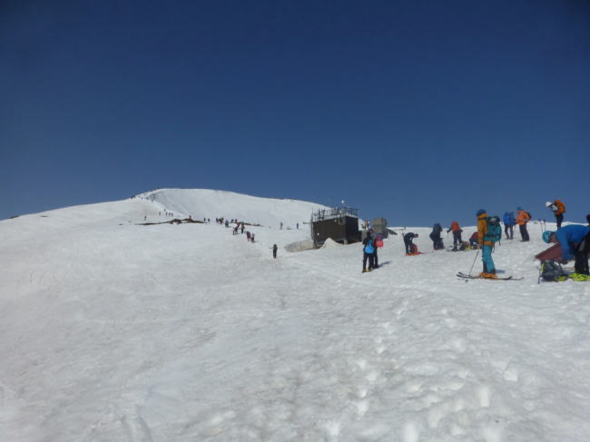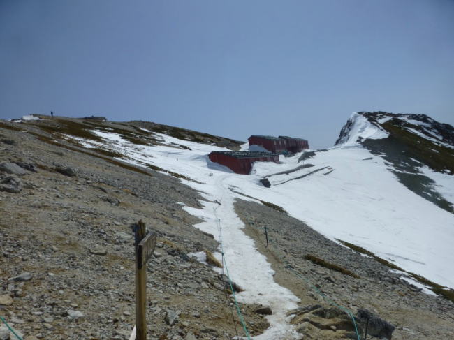 | ・八方池山荘〜唐松岳までは、冬季は初めてだったが長い尾根を直登で登っていく感じだった。 八方池山荘で、皆につられてアイゼン装着、トレースが有るので、ツボ足で登っている方もいた。 雪山トレと称して極力トレースを避けて登ったが、特に大きく踏み抜くことは無かった。 第三ケルン以降少し尾根が細くなり急斜面になっていった、また風も少し強くなった。 唐松岳頂上山荘手前では、悪天候だと視界が無くなり細尾根を通過する時に滑落することが予想された。 唐松岳へは、唐松岳頂上山荘の後ろから向かうルートになっていた。 唐松岳山頂は、風も強く無く簡単なコーヒーブレイクが楽しめた。 ・下山は、一旦、唐松岳頂上山荘に寄った(小屋の周りは雪が無くなりつつあったが、テント場は雪の急斜面となっていた) 唐松岳頂上山荘〜八方池までは、登りの人を避けることと雪山トレ継続でトレース外を歩いたが、一度大きく踏む抜き 登りの登山者に助けてもらう程足が抜けなかった。その後は、慎重にルートを確認したので大きく踏み抜くことは無かった。 八方池が雪で埋まっていたので少し寄り道で池上を歩いた。 その後も快適に、雪道を下山し八方池山荘へは予定よりも2時間以上早く下山できた。 |