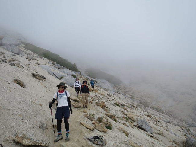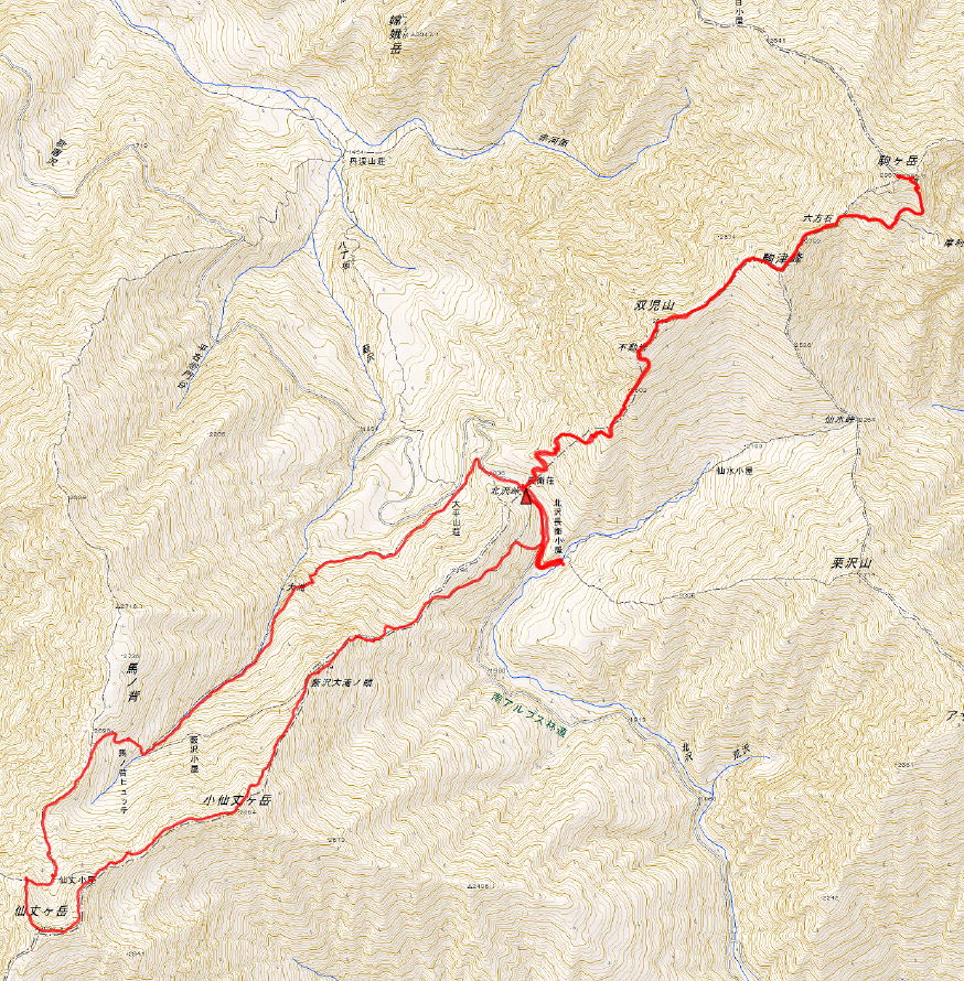 | ・高校、大学山岳部の夏合宿時期と重なったようで北沢峠のテン場は団体テントで一杯で我々のお隣テントも水戸の女子高生だった。甲斐駒の登山道では数 え切れない程の学生パーティと出会ったが岩場でのすれ違いでは神経を使い時間を要した。 ・天候は初日:曇りのち雨で2日目:晴れだったが無風となると暑くて、とくに初日の甲斐駒は思うようにペースが上がらず計画より時間がかかった。 |