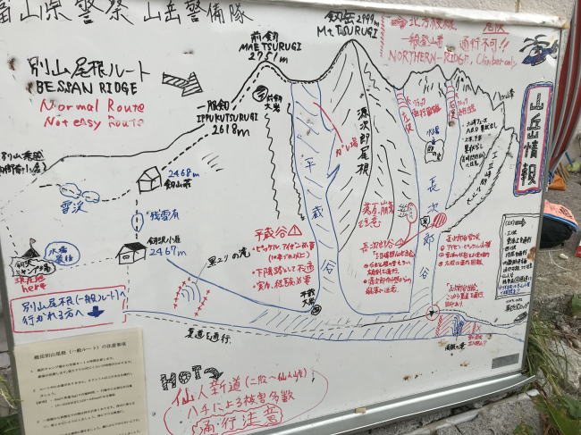 【 8/13 】 岐南町役場(1:00)-中濃総合庁舎(2:00)-立山駅(5:30/出発6:20)-室堂(7:30)-剱御前小屋(11:00)-剱沢キャンプ場(12:00) 【 8/14 】 剱沢キャンプ場(3:00)-八ッ峰取付(5:00)-5・6のコル(7:00)-八ツ峰の頭(9:00)-剱岳(11:00)-剱沢キャンプ場(15:00) 【 8/15 】 剱沢キャンプ場(6:30)-室堂(8:00発)-立山駅(9:07)-風呂((グリーンパーク吉峰)10:20/11:30)-昼食-中濃総合庁舎(15:30)-岐南町役場(16:10)