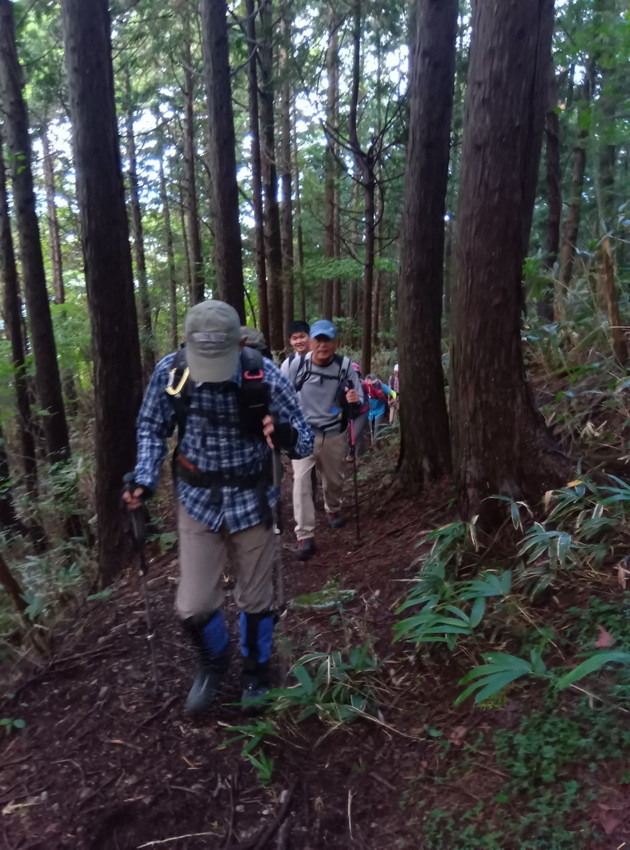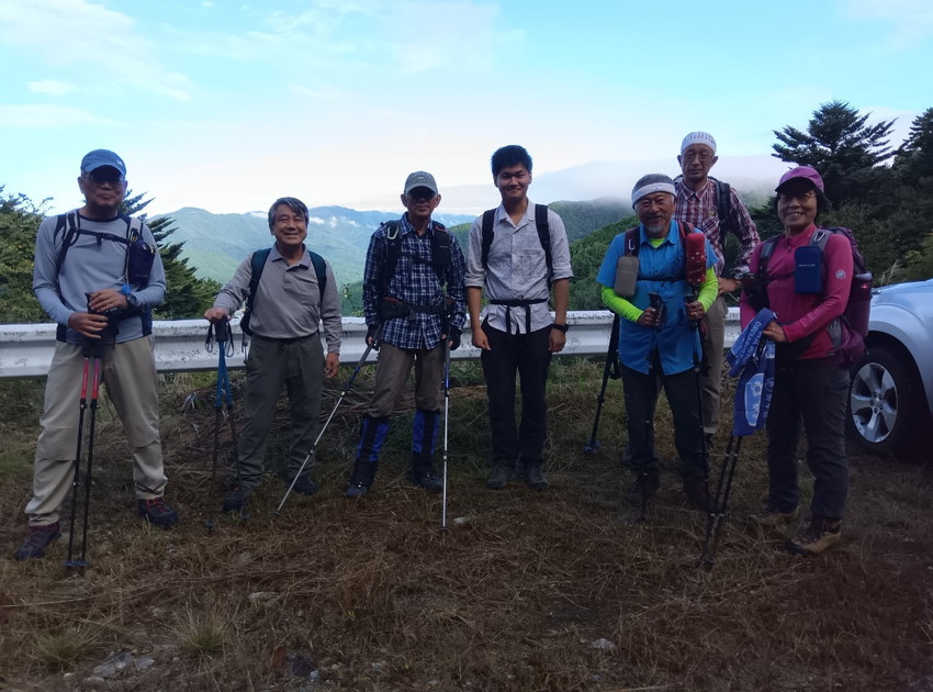 ・道中、先行している山D号と連絡がつき予定していた水洞平からスタートの沢ルートは山D号乗車のリーダー(ドライバーケン)の偵察したところ、昨夜来の降雨による増水で渡渉にリスクがありとの判断し尾根コースの上村ルートピストンに変更の指示があり、その先のゴール予定地の上村登山口駐車場で集合する。