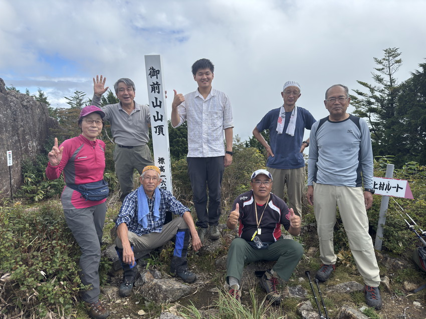 | T橋宅5時=7:00桜洞登山口7:40=8:00水洞平駐車場=8:10上村登山口8:20→鷹巣岩8:40→憩いの広場9:30→11;10御前山11:50→憩いの広場12:30→鷹巣岩14:00→上村登山口14:20=T橋宅17:20 |