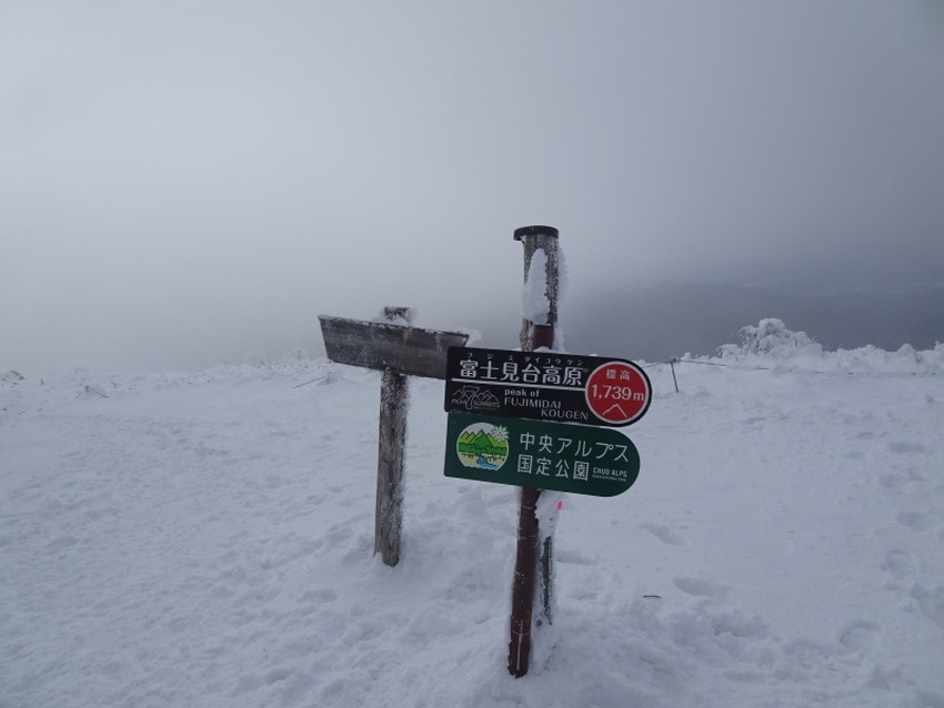 - 登山口から雪がしっかり有りトレースも固めでツボ足でも問題無し、富士見台高原口?の分岐までの急なジグザグ道も昨日、TVで川上憲伸が言っていた「膝をわると足が攣る」を教訓に内股・小幅で歩く!!