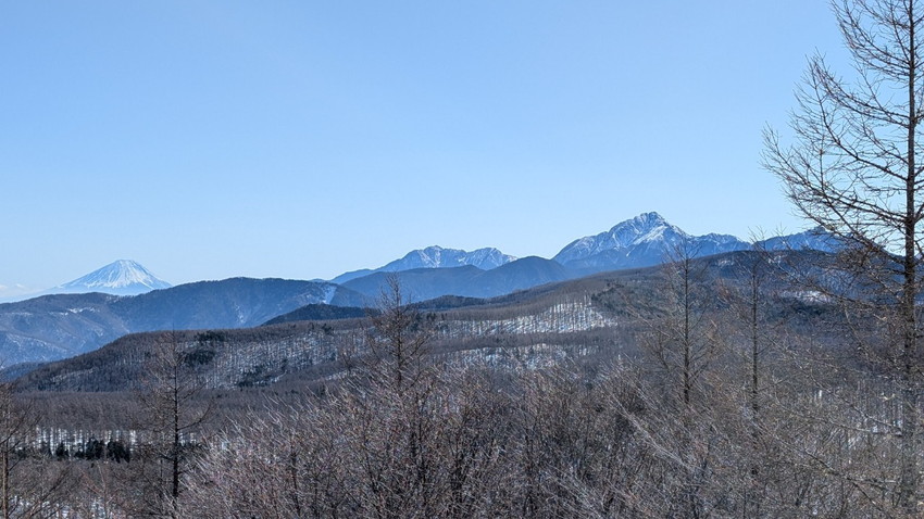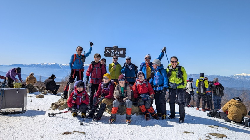 - 今日は天気にも恵まれて山頂からは富士山、八ヶ岳、北アルプス,中央アルプスが一望出来ました。参加メンバーの方と楽しく登山が出来ました。