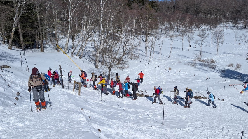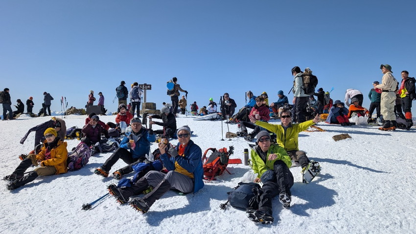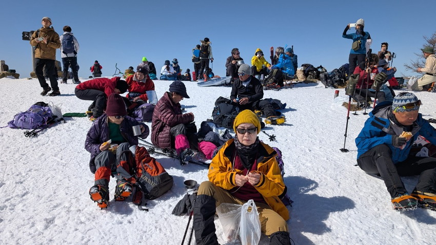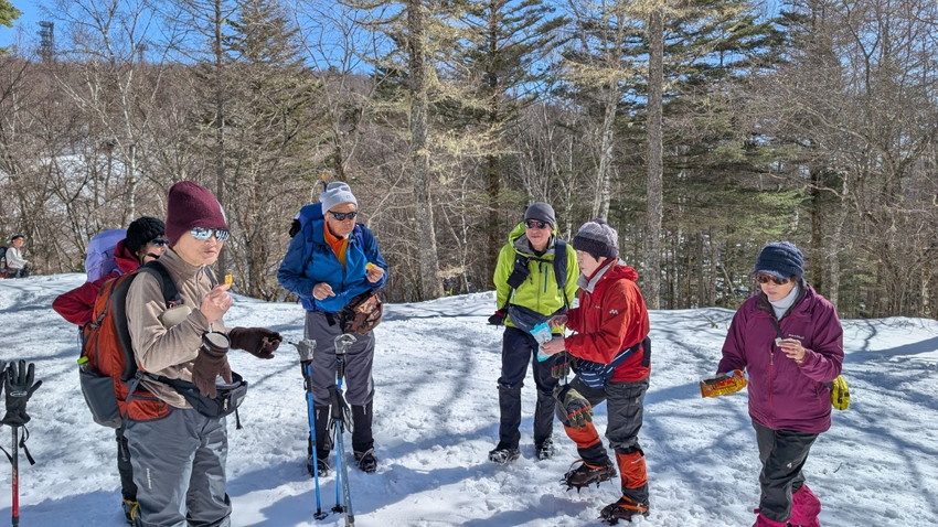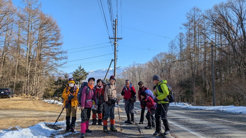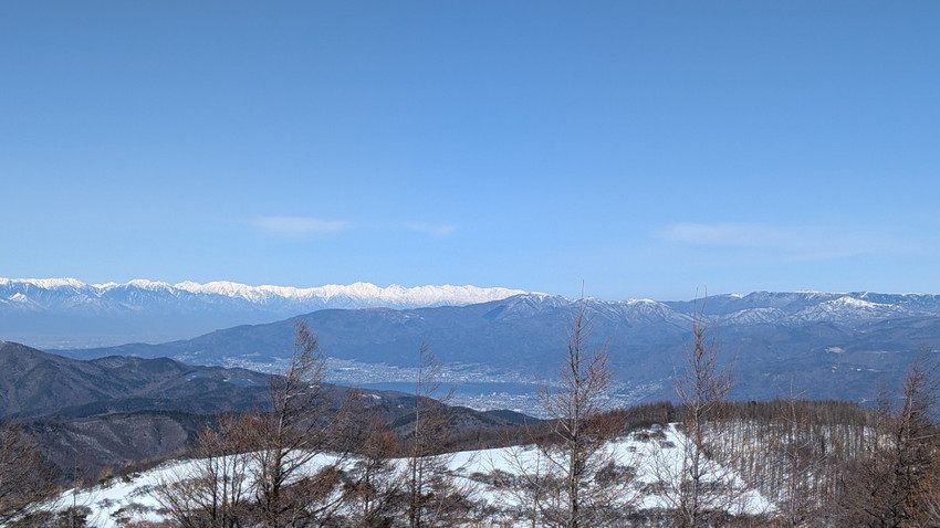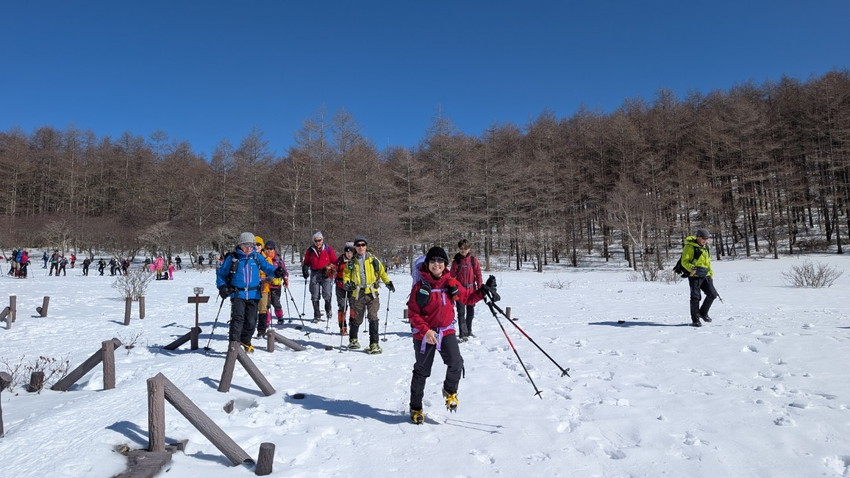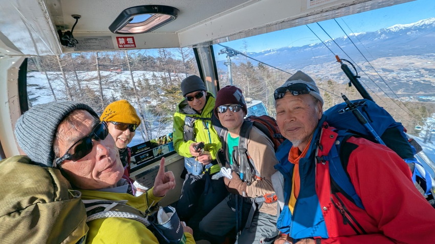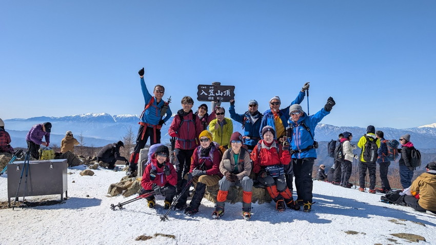 - 12人の仲間と入笠山へ登りました。天気は快晴、まさに登山日和。青空の下、雪を踏みしめながらのトレッキングは心地よく、冬山ならではの静寂と美しさを存分に味わいました。山頂は360度の大パノラマが広がり、八ヶ岳、乗鞍岳、御嶽山、そして遠くには富士山まで見渡せる贅沢な眺め。白銀の山々が陽の光を浴びて輝く姿は、まさに冬ならではの特別な風景でした。登山道は適度な雪のコンディションで、アイゼンを装着しながらも快適に歩くことができました。メンバーとともに会話を楽しみながら、ゆったりとしたペースで進むトレッキングは格別の時間。雪山の澄んだ空気を胸いっぱいに吸い込みながら、日常を忘れるひとときとなりました。 山頂では温かい飲み物を片手に絶景を楽しみ、しばしのんびりと過ごしました。