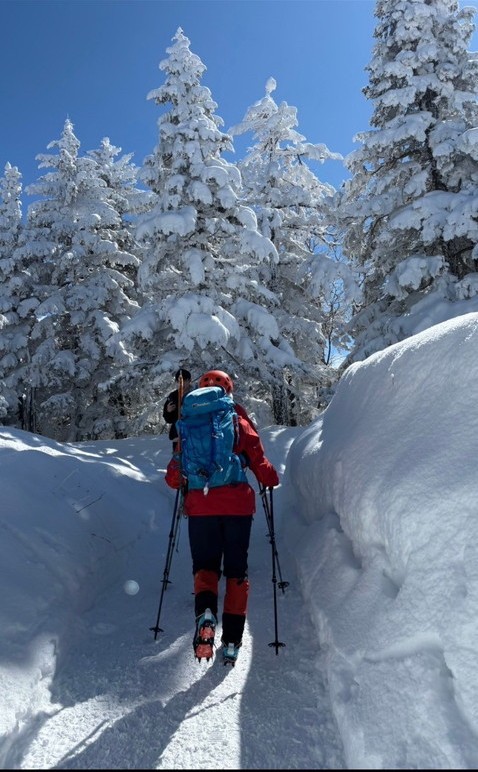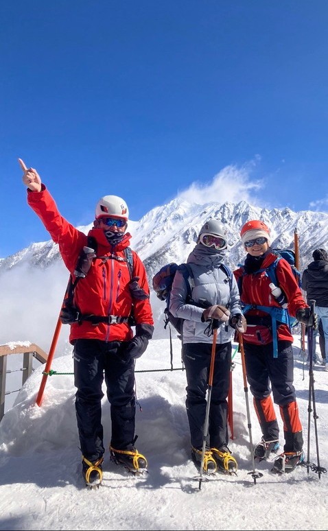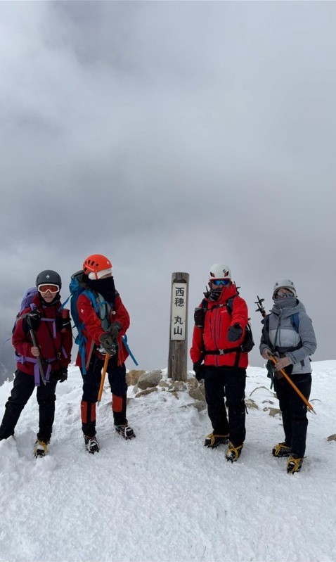 - 朝から良い天気に恵まれ、美しい景色を見ながらの楽しい山行でした。楽しみにしていた西穂山荘のラーメンはとても美味しく、パワーチャージして西穂高丸山まで登りきれました。今回、色々とアクシデントがあり、ギリギリまで行けるか分かりませんでしたが、4人揃って行けて良かったです。(あずき)