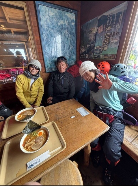 - 山行3日前に腰を痛め、登れないかも、と焦りましたが、ロキソニン飲んで参加。でも行って良かった!行かなければ見られない夢のような山々の景色。西穂山荘の温まる美味しいラーメン、山行後の豆腐ステーキとモツ焼き、まるで美味しい名物を食べ歩きしているような幸せな山行に大満でした。(nao)