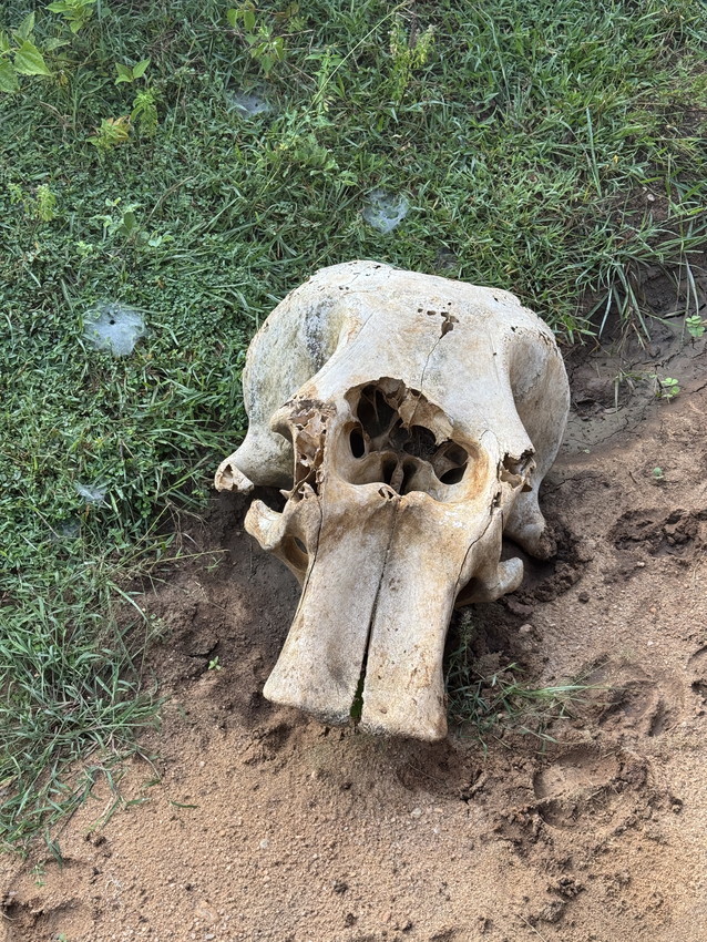 下の象の頭骸骨を覗くお金持ちのインド女性↓