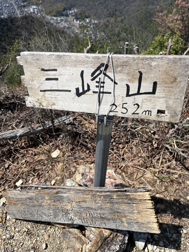 - 寒い朝が幸いしてか、きつい山行を覚悟していたのだけれど、思いのほか脚が進みました。8つの低山を上り下りしたのです。一番は三峰山山頂の広場でした。(HIROMI)