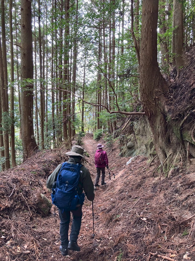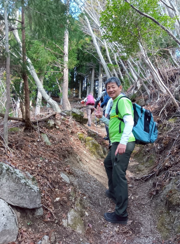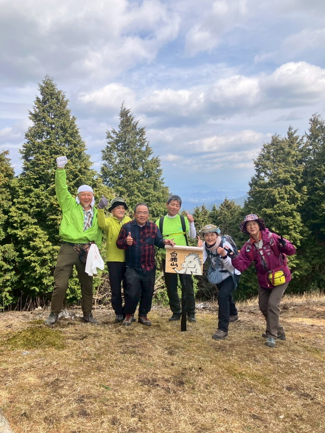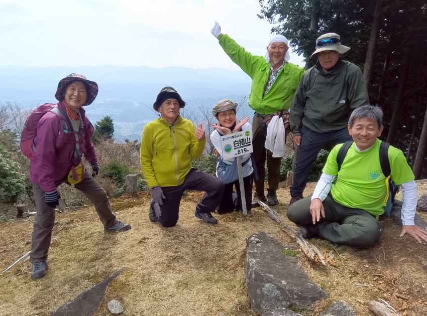 - 初の報告です。よろしくお願いします。先週はぽかぽか陽気だったのに、昨日から急に寒くなりました。 YAMAPは山頂マイナス2℃予報、、もしかしたら雪があるかもと思い、チェンスパ持参です。全く不要でした。途中寄り道?して白猪山登山口着、私たち以外、誰もいません。事前情報では、ミツマタの香りがすると、、しかし全く見当たりません。9/10まで進み、展望台のところで、やっと一本、見つけました。まつさかイレブンの第11座、白猪山着、眺望は、、、まあまあです。下りは別ル-ト、ようやく、別の登山者と遭遇しました。道はコンクリ-トの打ちっぱなしのような変な道がずっと続きます。階段よりたちが悪い悪路滑らないように気をつけながら進むと、突然、ミツマタ大群を発見!甘い香りが漂っていました。ようやくミッション達成できました。 またまた長い車道です。そろそろお腹が空いてきました。車で移動、本日のメイン、鳥味噌焼きです。 30分ほど、車内で待機しましたが、思ったより早く入れました。味噌タレ、肉もプリプリで美味しかったですね・・お土産にタレを購入しました。 鳥ハムを作るときに使います。