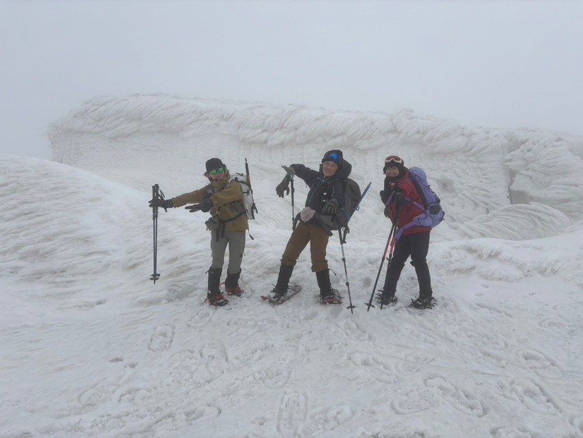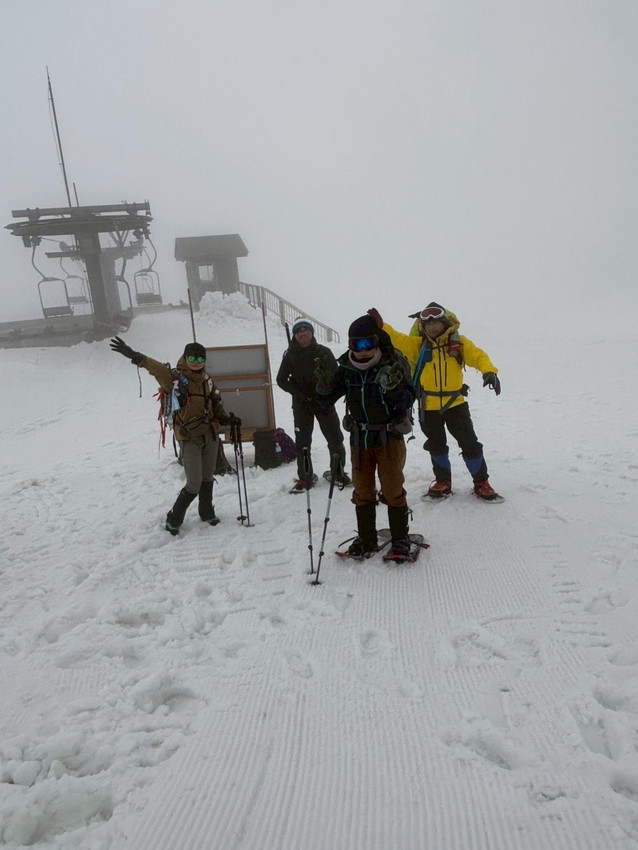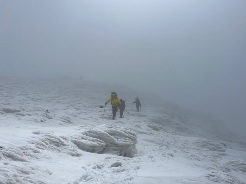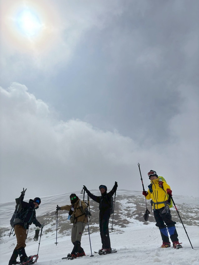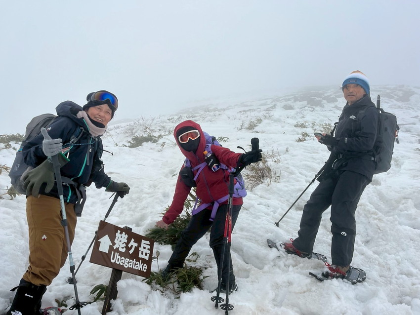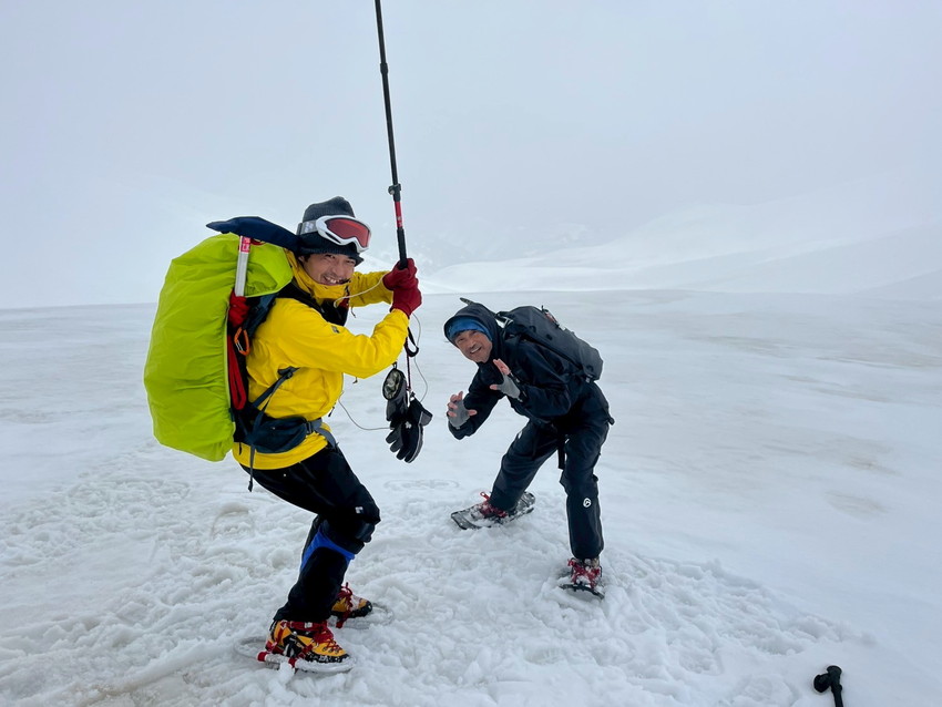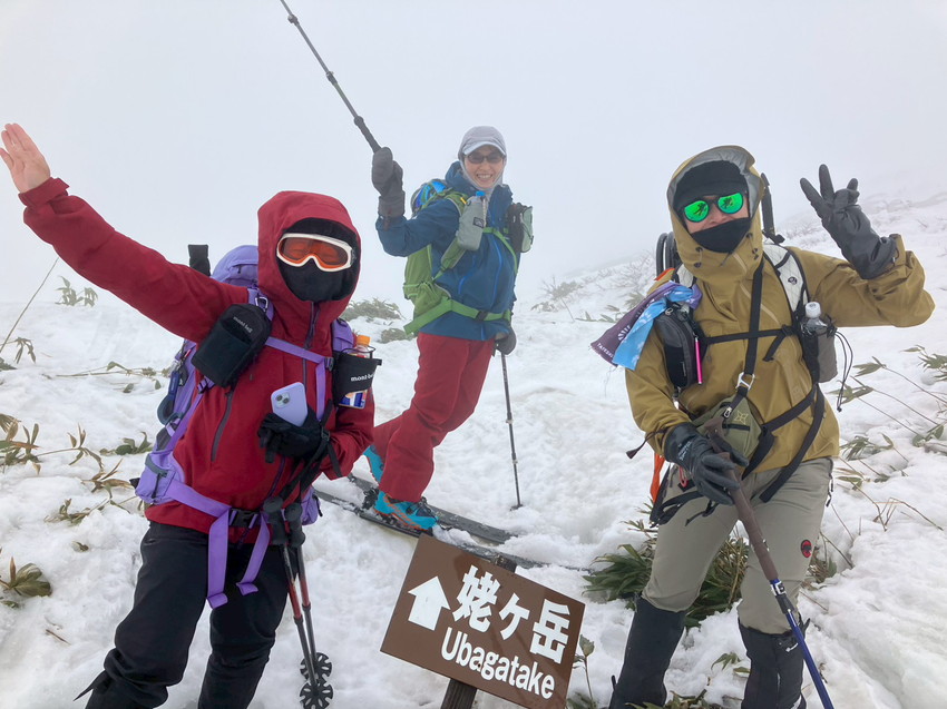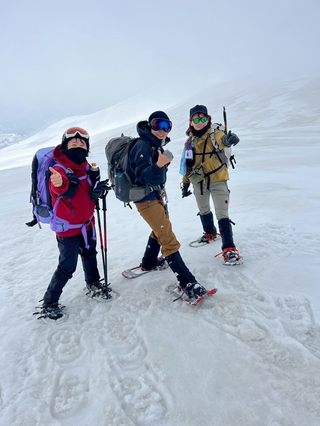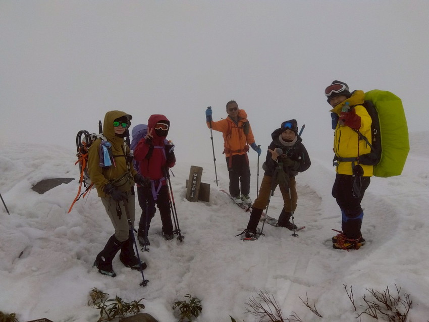 - 月山は生憎のお天気で、ホワイトアウトや道迷いがありましたが皆で山頂を踏む事が出来ました。爆風の中を全員で辿り付けた事に感動しました。(CHIAKI)