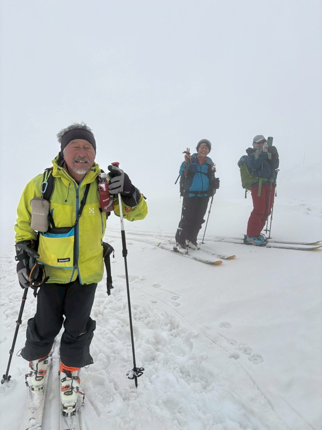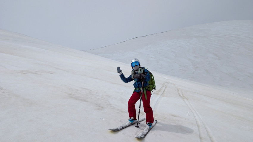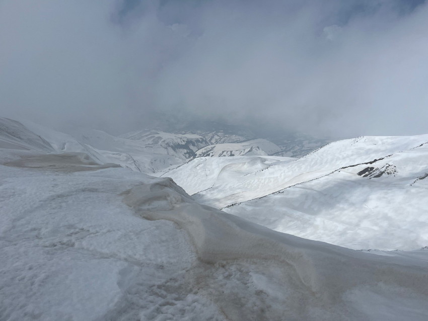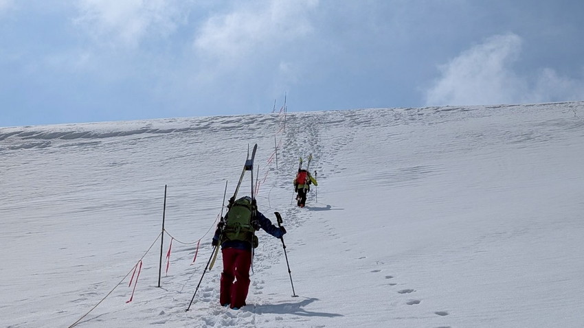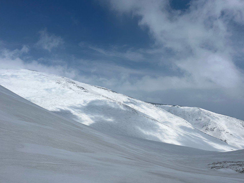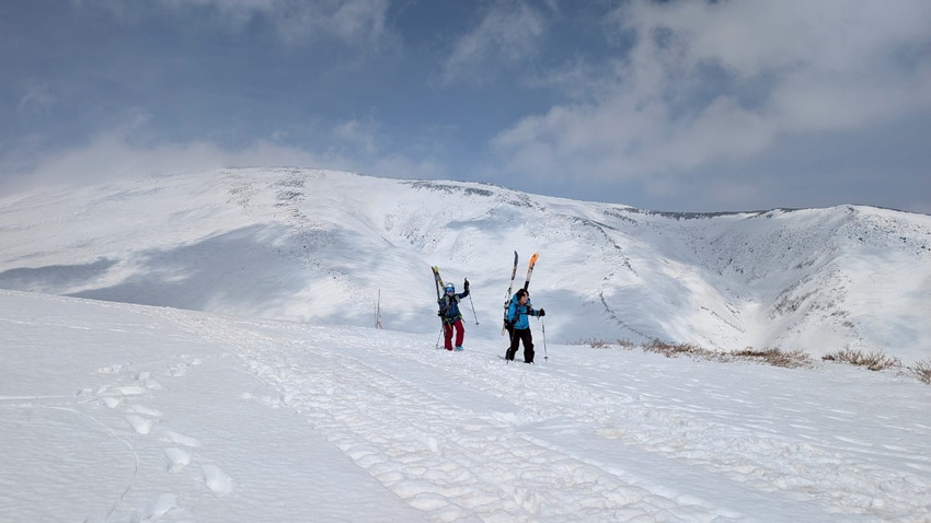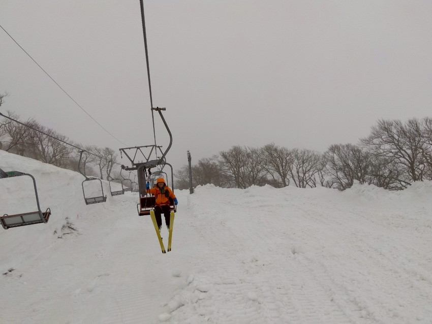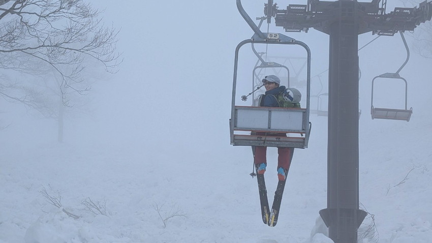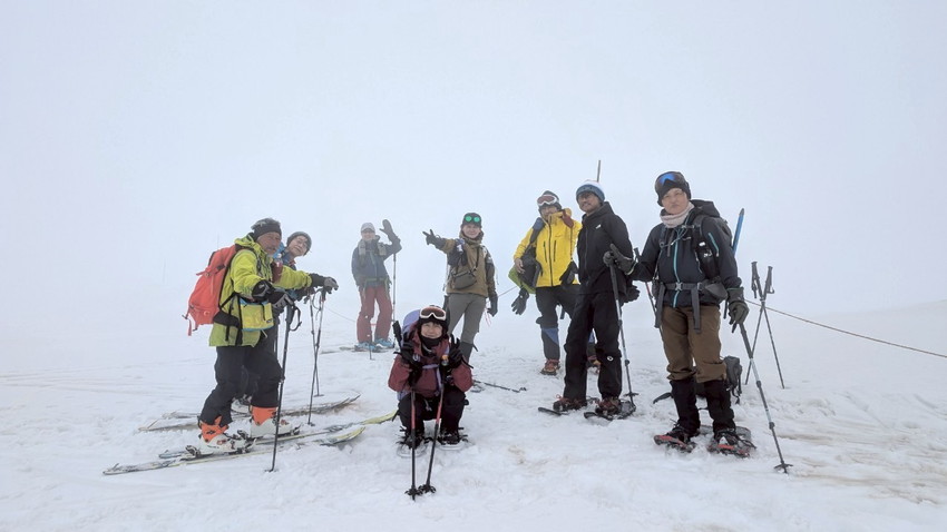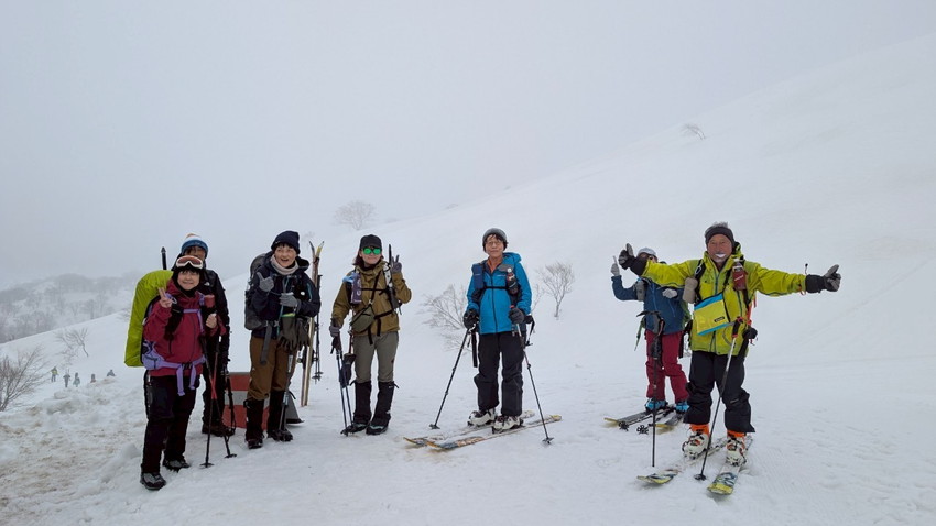 - 今回は月山では、ホワイトアウトで登り初めから真っ白、山の天気は変わりやすいとは聞くけれど地形や方向が分からなくなる”白い闇”見えない恐怖を感じました。今回は状況としてはマシな方らしいですがスマホの地図を見ても周りの状況が見えない中で現在地が分かっていても進行方向がまったく違っていてそれも幾度も。グループで行動を共にする安心感と滑り降りる方角が教えてもらえる難有さをしみじみ感じました。1日のうちに晴れ、吹雪、突風また晴れ、天候が目まぐるしく変わってゆく自然を体験できる事も大きな魅力のひとつなんだなあと感じました。(KAZUKO)