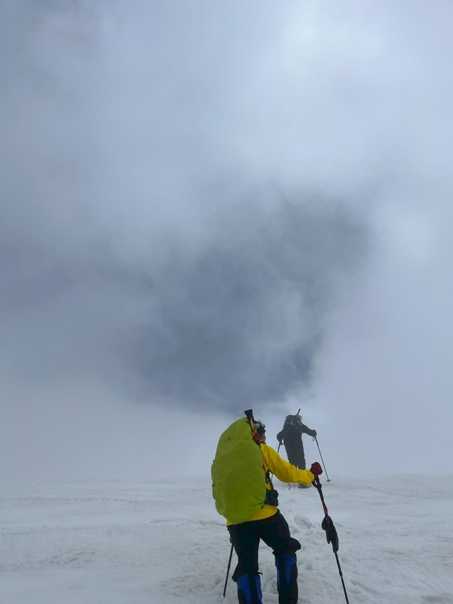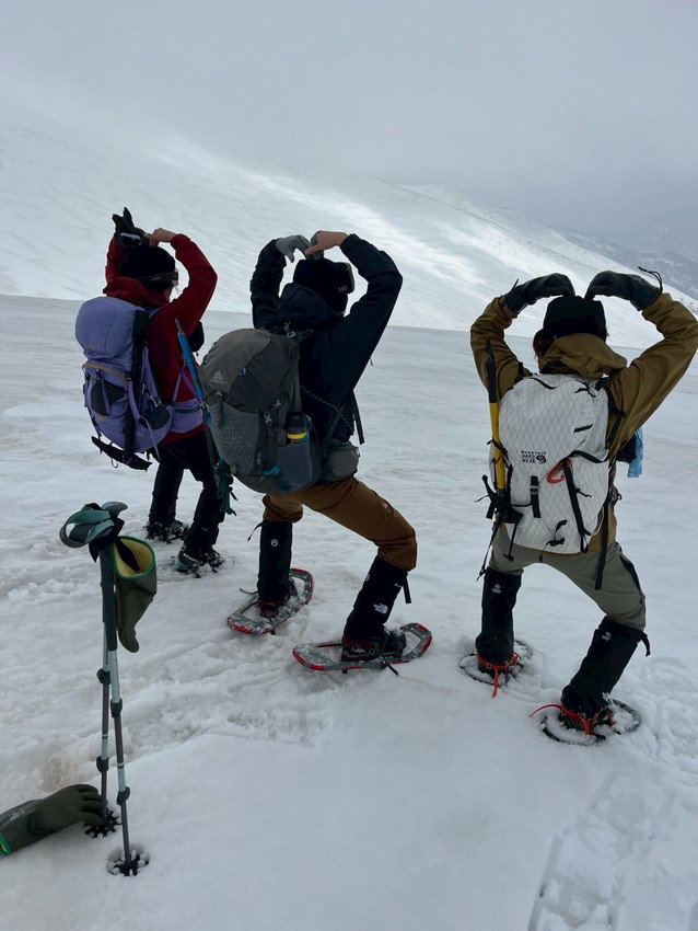 - 1日目の月山登山は、登りのホワイトアウトや緩い雪に穴に足がはまり苦戦しましたが、皆さんに助けて頂き何とか登頂出来ました。(あずきちゃん)