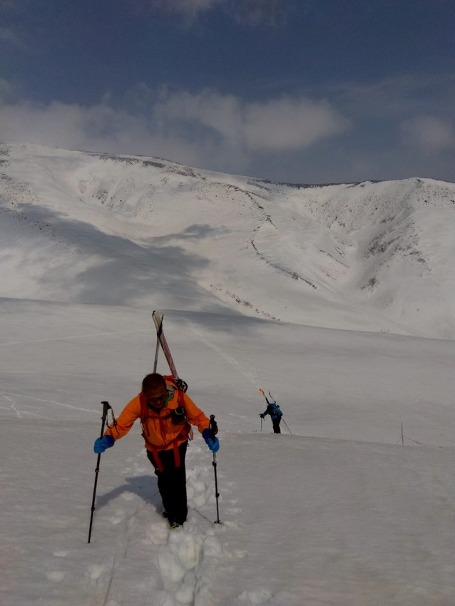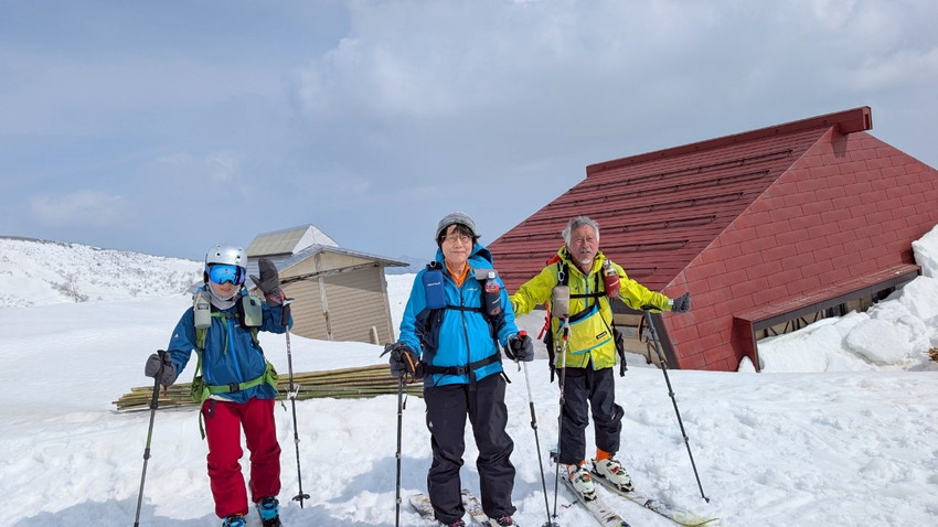 - 今回、山スキーとワカン組との混成パーティーでしたが、山スキー組はタッキーと和ちゃん、T橋夫婦と足が揃う組み分けをした。また、ワカン組は、松ちゃんと亡きベイベーの飼い主が十分リーダーシップが取れるのを確認でき、他の女性陣も頼もしく感じました。