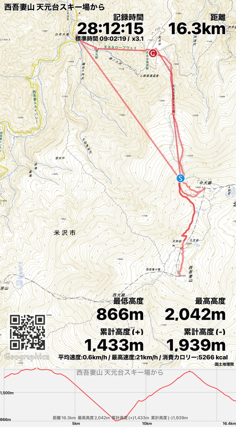 | 天元台高原駐車場9:30-ロープウェイとリフトでゲレンデトップー中大巓と西吾妻山のコルー中大巓と西吾妻山に別れるーゲレンデトップーロープウェイとリフトー天元台高原駐車場(全員が揃ったのが15時50分) |