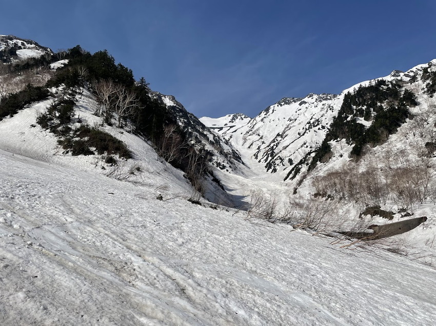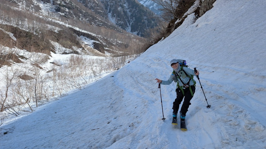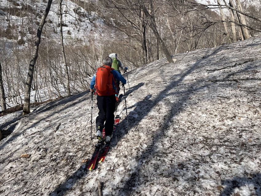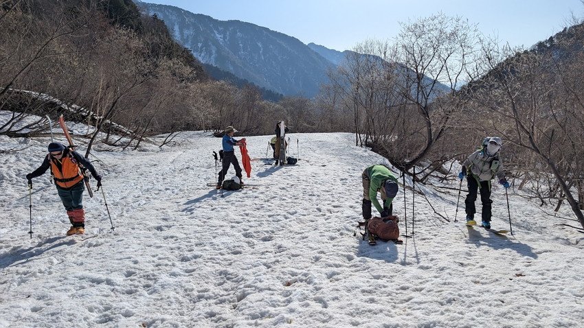 - マヤクボ出合では昨年の反省から早めにシートラにしたが、昨年ほど雪は緩んでいなかったのでシール登行を続けてもよかったかもしれない。