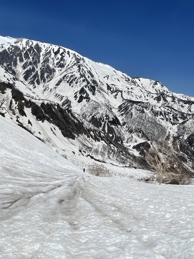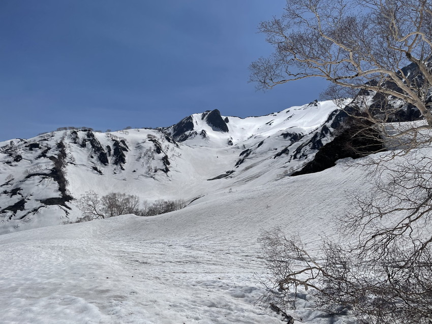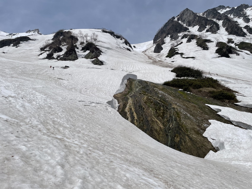 ・翌日に予定していた金山沢のルートを途中で目視確認したところ、渡渉地点のスノーブリッジは既に流されているようだったので、鑓温泉に再チャレンジすることにしました。