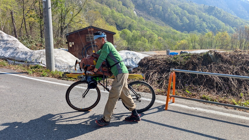 ・猿倉荘までの自転車走行(ほとんどは押して歩いていました)に時間と体力を使ってしまい、タイムアップで鑓温泉には到達できませんでした。