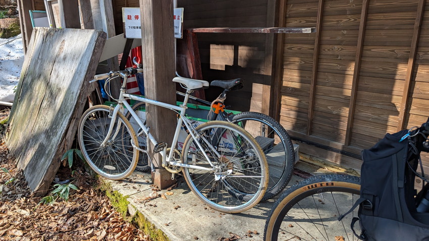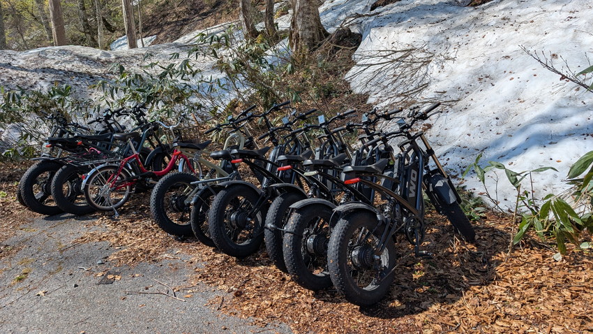 ・猿倉荘手前で雪が途切れていたので苦労しましたが、二股駐車場までは自転車であっという間でした。