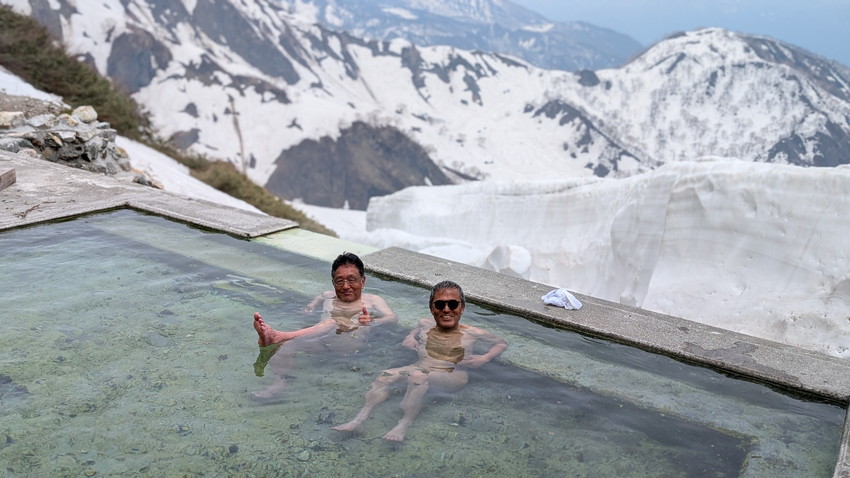 ・板やブーツなどを猿倉荘にデポしたおかげで時間や疲労度も少し軽減でき、昨日の疲労が残っていたけれど念願の鑓温泉に到達することができました。