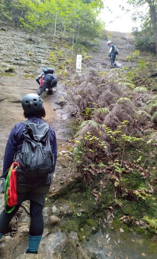 - 基本的な鎖場での体重移動、岩上り、岩下りの練習が出来て良かったです。恐怖心で体重移動が安定しない理由も分かりアドバイスが出来ました。(K合)