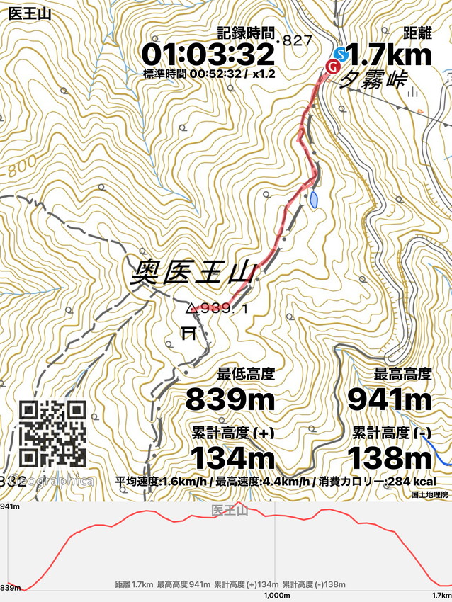 | 夕霧峠9:50-10:20奥医王山10:30-10:55夕霧峠 |