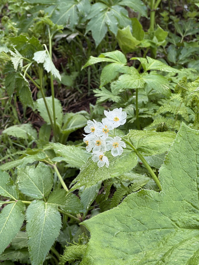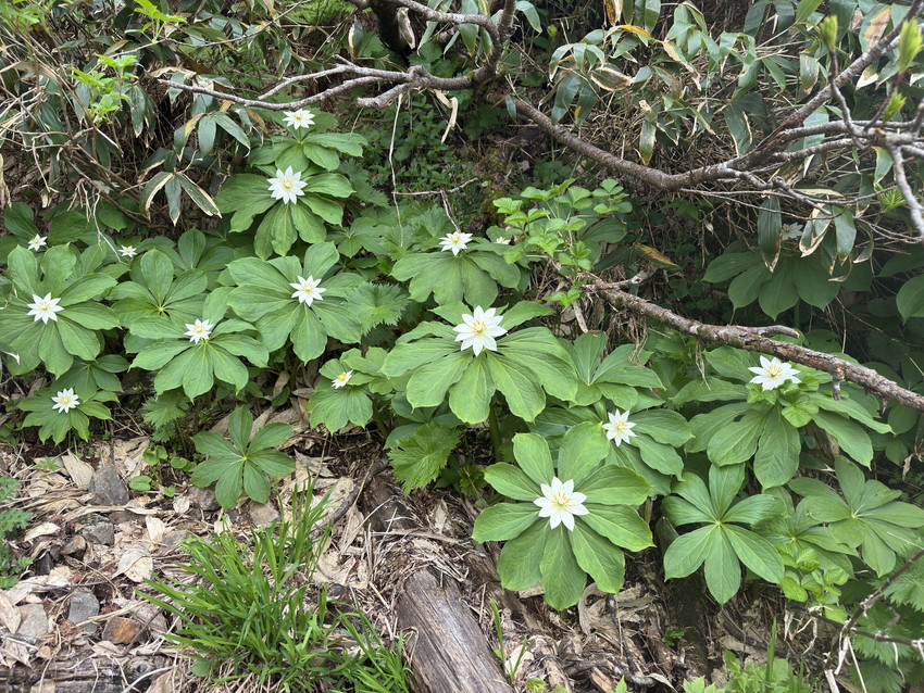 ・所々残雪ある登山でしたが 天候に恵まれ 透明のサンカヨウにキヌガサソウ群生出会え感激 覚えきれない可憐な高山植物 ケガもなく無事下山でき楽しい登山ありがとうございました。