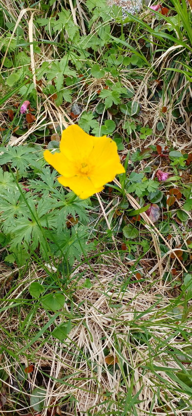 - 森林限界を迎えたあたりから景観が様変わりして、いかにも北アルプスといった素晴らしい景色を愛でながらの登り、体力の限界を名前のわからない高山植物との出会いで、何とかごまかしながら飛騨乗越に到着。まだ槍は見えず、槍ヶ岳山荘手前で対面。・翌日早朝に槍を登り、南岳に向けての稜線歩きを開始、天気に恵まれ素晴らしい景色のなかを、淡々と1人歩き、とても贅沢な時間を得る。