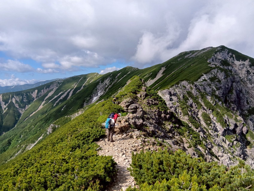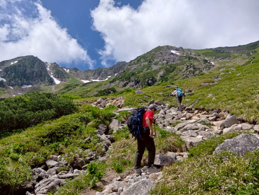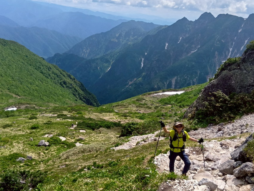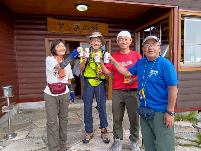- 笠新道登ってみて、何で皆さんが誘っても断られるのかがわかりました。1800㍍の急登、そして11時間の登りは、のんびり登山隊の域を逸脱していてかなりハードでした。終日晴天の北アルプスパノラマの景色に癒され、素晴らしい仲間に励まされ、最後は意地で何とか登りきった感じです(ドライバーケン)