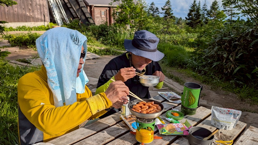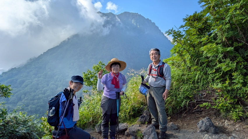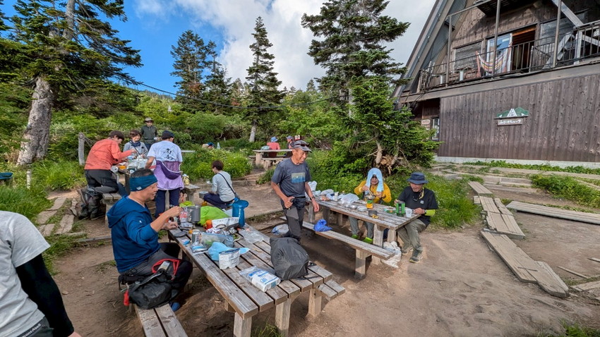 - 夏バテが一番の心配事でしたが、天候にも恵まれ、楽しいおしゃべりや豚汁・玉子スープ、星空観察会、程よいペース配分などのおかげで、最後はヘロヘロになりながらも2座を登頂し、無事に下山することができた楽しい2日間でした。〈タッキー〉