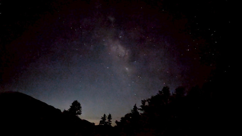 - 夕食は共同食の豚汁と歩荷してくれたワイン等で宴会。21時過ぎからタッキーさんによる星空観察会を行なう。なんとレーザーポインター持参で、緑光線で星を照らしながら解説をしてくれた。新月と、雲ひとつない好条件で、満天の星がみれた。