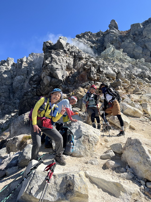 - 頂上に近づくと硫黄の臭いが漂い、水蒸気が所々で吹き出していました。下りは上高地へ下りたので長く、はしごもあり時間もかかりましたが、楽しかったです。ありがとうございました。