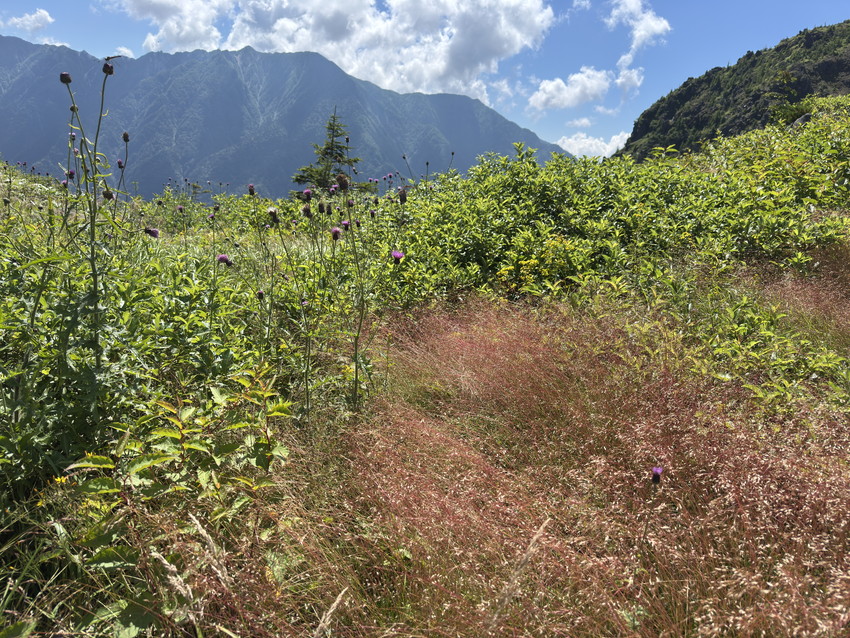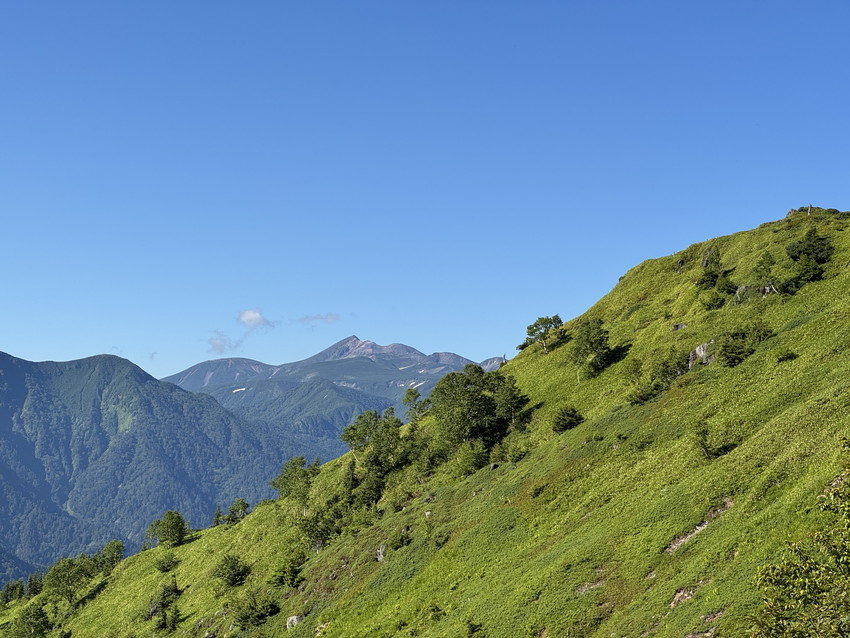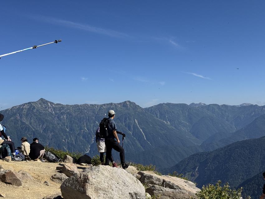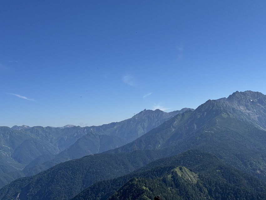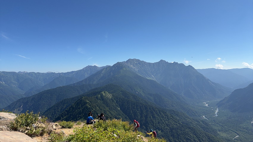 - 焼岳への登りは樹林帯では空気がひんやりとしていたり、稜線に上がっても谷から涼しい風が吹いて快適だった。山頂からは笠ヶ岳、槍ヶ岳、穂高の山々、新穂高温泉、上高地などが全て見渡せた。晴天のおかげで空の青、斜面の緑など、景色が色鮮やかで美しい。今回は上高地に下山したが、急下りが多く、距離も長かったけど、30年以上ぶりに上高地に来れて嬉しかった。