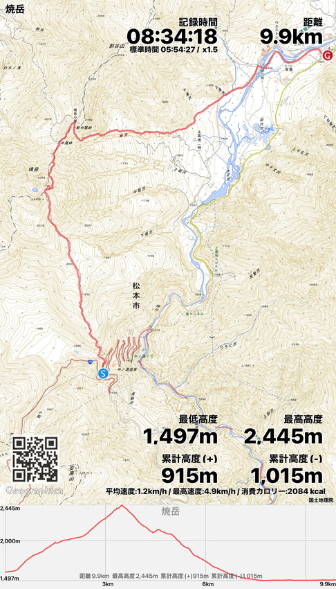 | T橋宅2:00⇒新中の湯登山口5:00→広場6:30→焼岳北峰8:30~9:00→焼岳小屋10:20→上高地13:30~13:40⇒タクシー⇒登山口13:30・・温泉15:20⇒T橋宅18:00 |