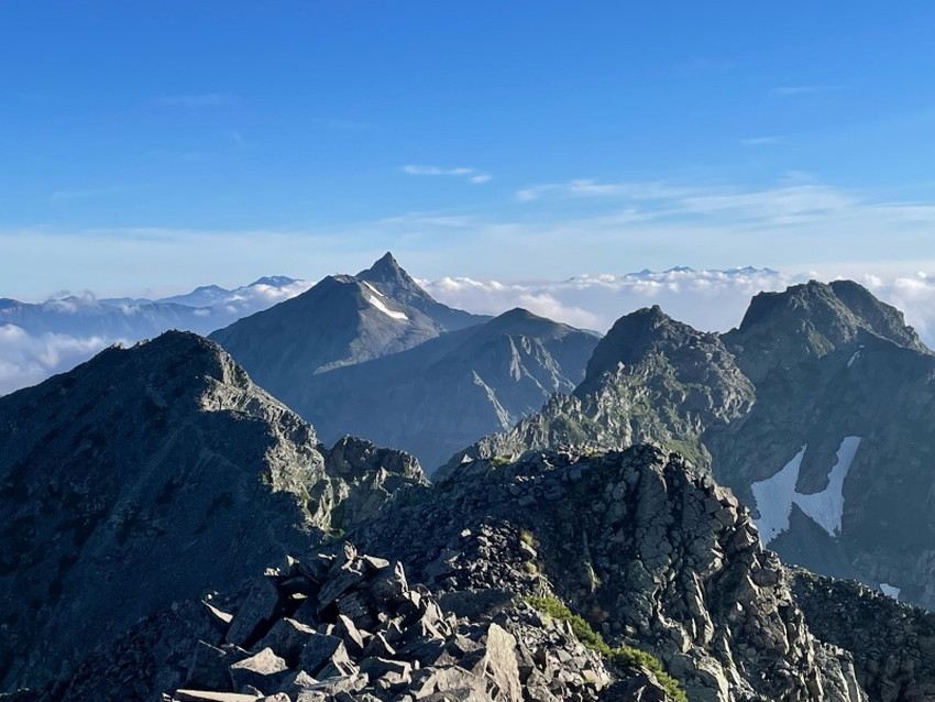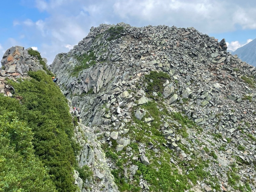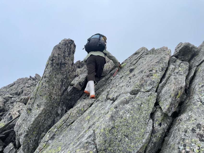 - 翌日からが本番、核心の連続、四本足歩行が殆ど、アップダウン連続、浮石、落石、緊張と体力勝負でジャン様ではタイムオーバー、テッペンは断念、腹だけ巻かせてもらいました。