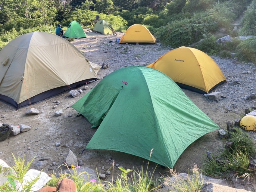 - 帝国ホテルから急登避けて焼岳小屋回りで距離は遠くなったけど、初ルートを楽しみながら西穂山荘テント場着で空いてたので一安心。