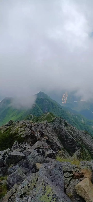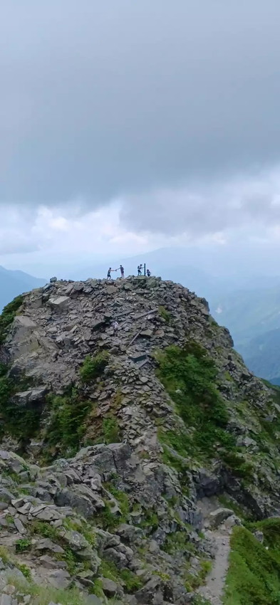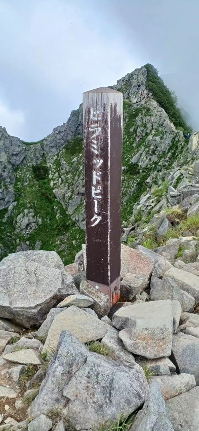 - 西穂ピーク手前の一枚岩は以外と滑りやすく注意必要、鎖あるが破損しており役に立たない。