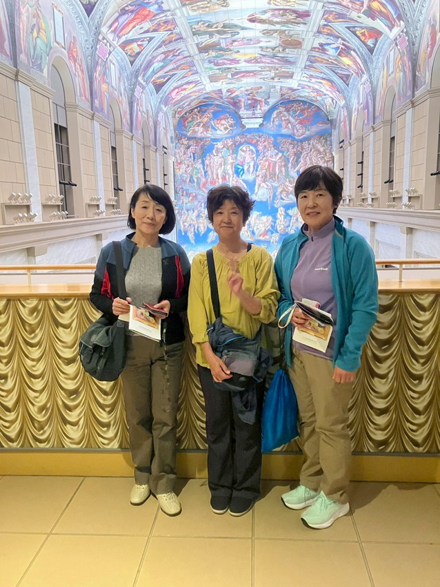 - 土曜の歓楽コースではK島さんの提案で大塚国際美術館を再び訪れる事が出来て女性陣は大感激。モネやフェルメールの映えスポットでコスプレした写真撮影も楽しい思い出になりました。
