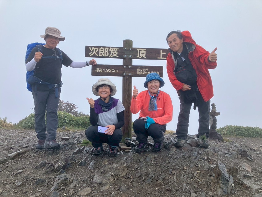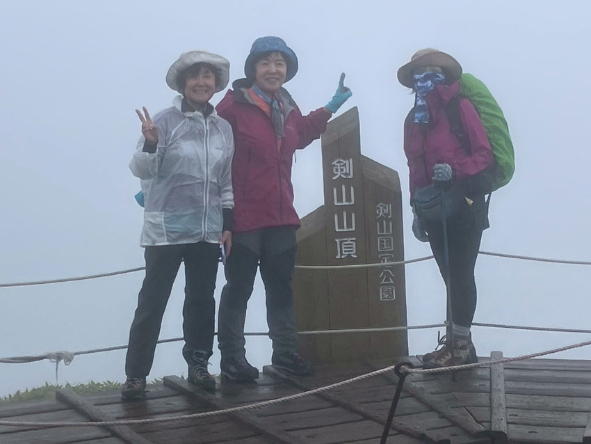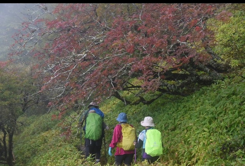 - 整備された山道で、とても歩きやすかったです。剣山から先の次郎笈は、岩場が滑り、慎重に登降しました。霧雨で景色はあまり良くなかったのですが、皆さんと話しながらの登山、とても楽しい山行となりました。ありがとうございました。(あずきっ娘)