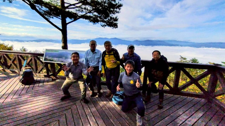 - 朝霧がかかり下の町はみえませんが高山から雲海を見るようでとてもきれいでした。ぞくぞくと登山者が上がってきて歓声を上げてました。