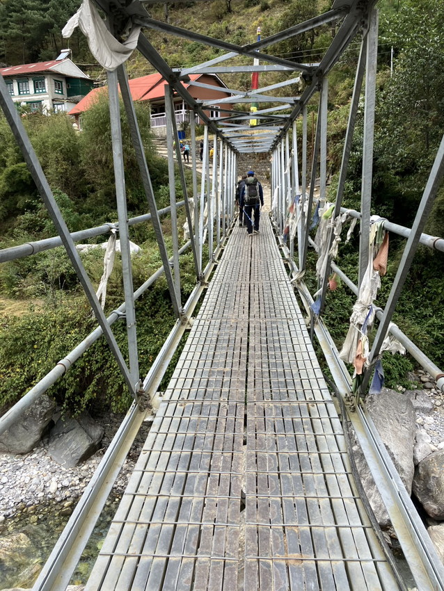 - 10月26日 晴れ。昨晩の馬券を購入出来なかったショックから立ち直れないままスタート。小さなアップダウンをくり返しヒラリーブリッジを超えてナムチェへ。思った以上の街の大きさに驚く。高山病の症状もなく順調にきている。