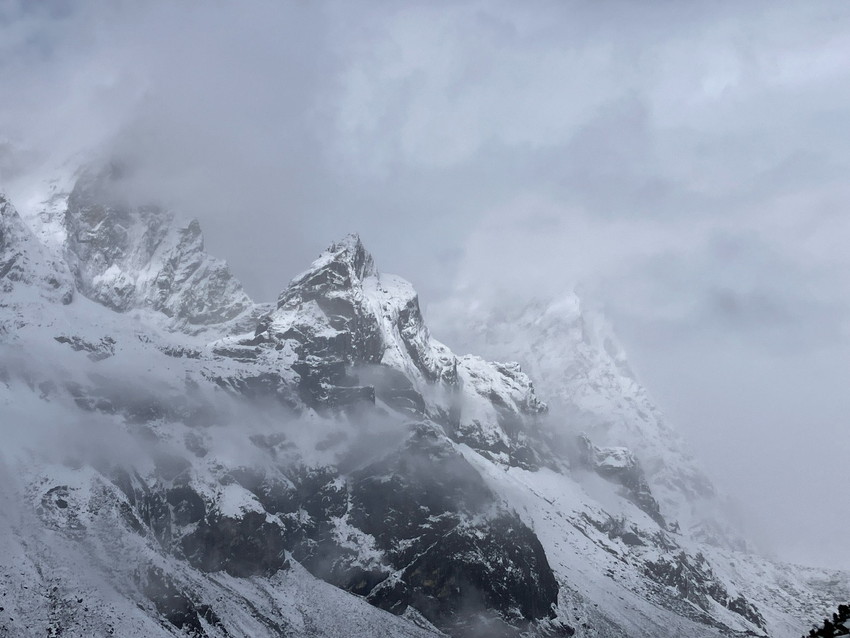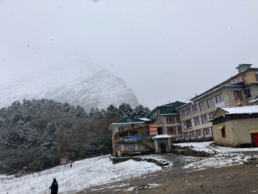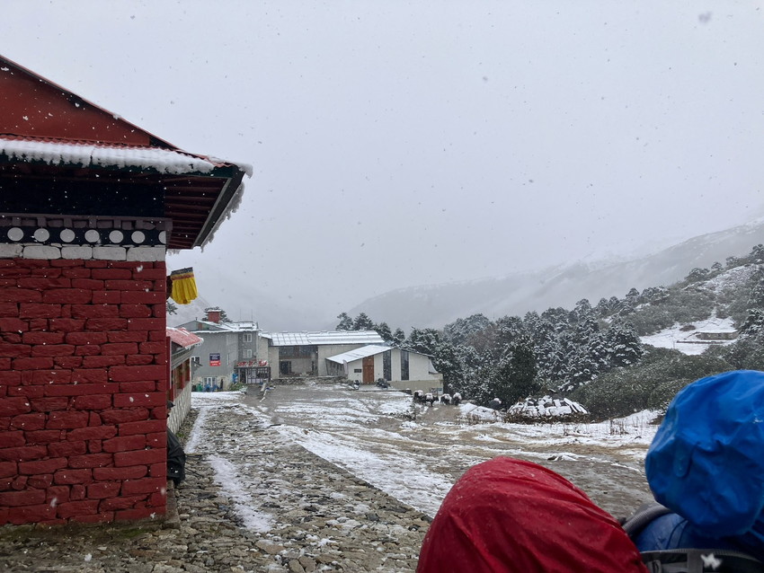 - 10月29日 雨~雪 この日も朝から雨。眺望は何もなく修行している感じだった。昼過ぎディンボチェにつくと雨から雪に変わった。