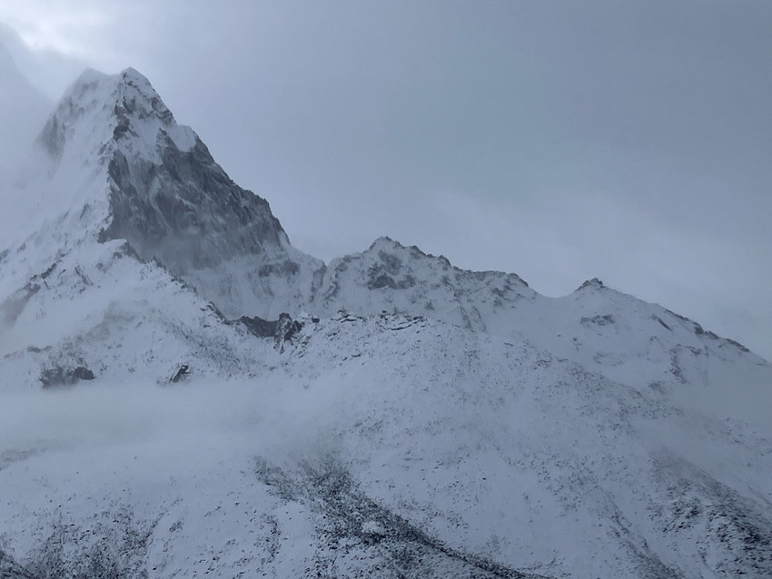 - 10月30日 曇り~雪 この日も高所順応日。ナダソンピークに行く予定も雪が降ってきたため途中撤退。ロッジでゆっくり過ごした。