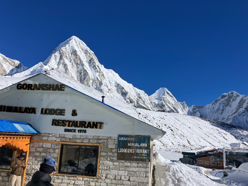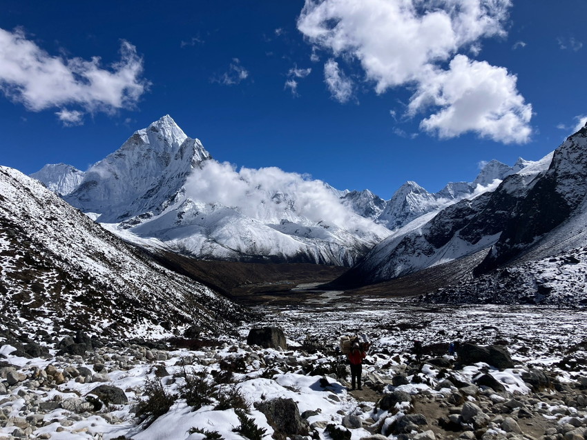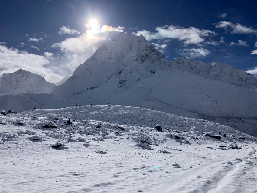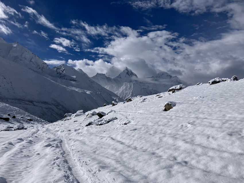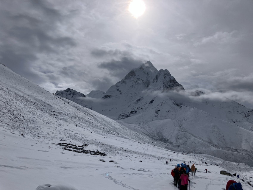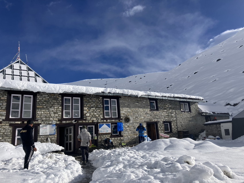 - ・10月31日 晴れ ディンボチェからスタート 。トゥクラを経由してロブチェを通り越してピラミッドロブチェという宿で宿泊。途中雪も多くて大変でした。前日にロブチェでヘリコプターがスリップしたようで、ひっくり返ったままになってました。宿で血中酸素を測ると、調子は良かったですが85しかなかったです。