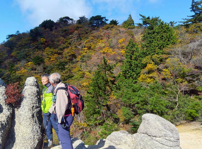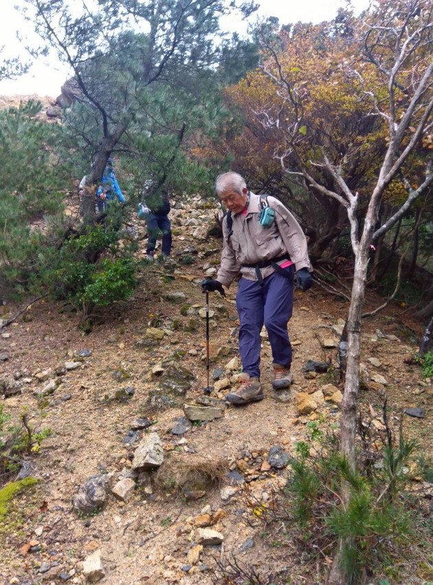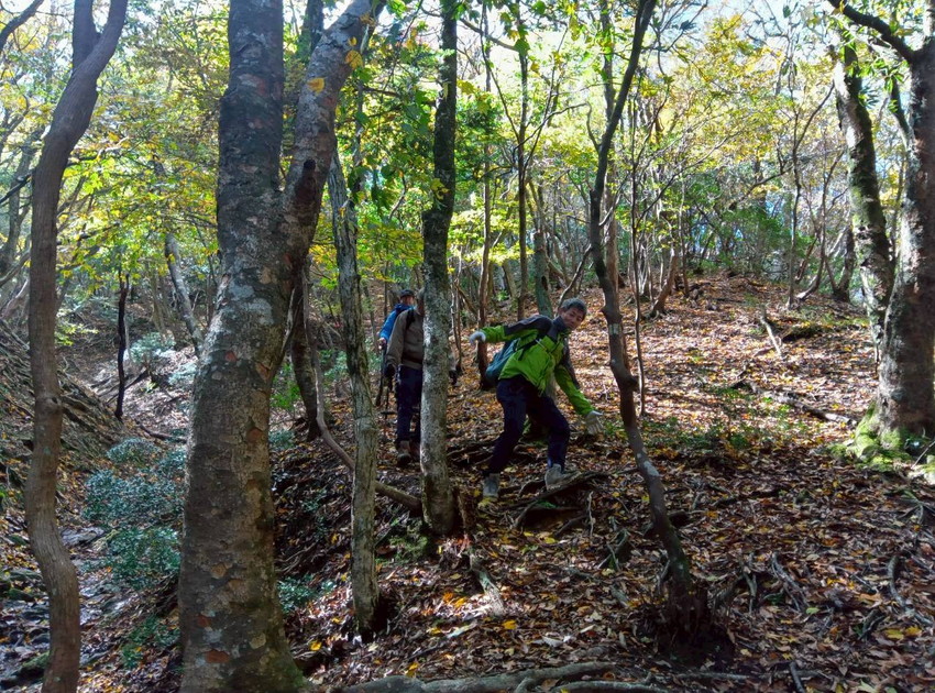 - 台風並みの強風により周回を断念し山頂往復になったが、鈴鹿らしい砂れきの登山道や紅葉にさしかかった木々、東海展望からの眺め、タメになる会話などを堪能して十分楽しめた山行でした。(Nさん)