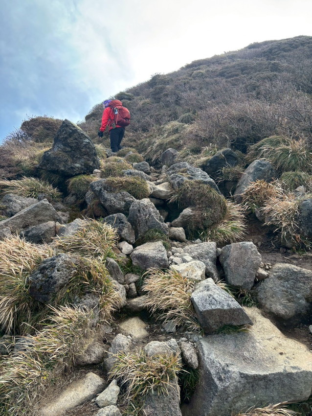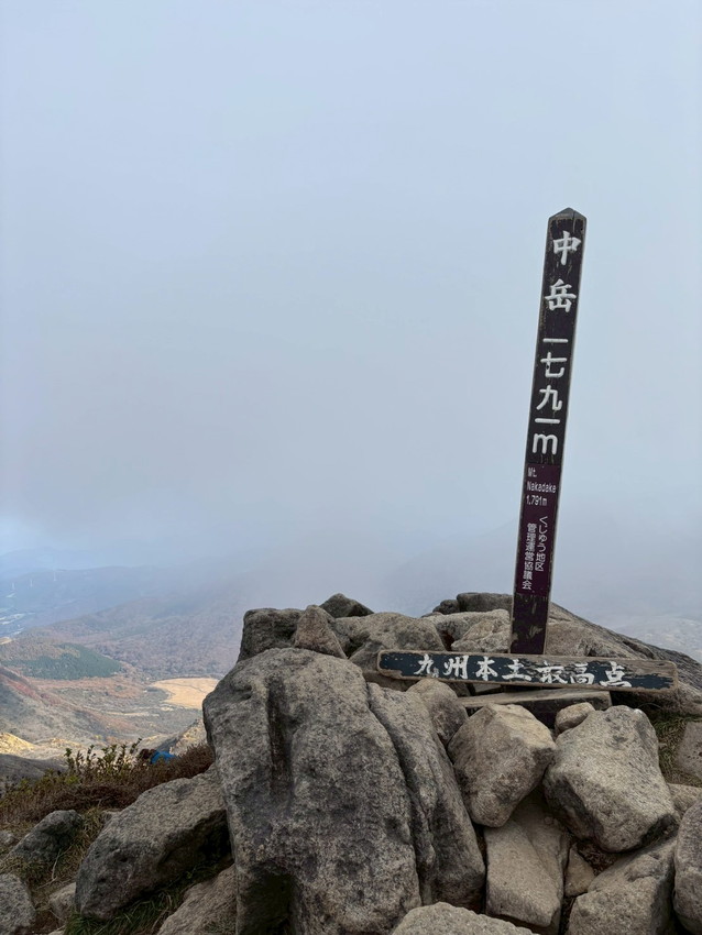 - 少し雨が降ってきたので、久住山より先に九重山の最高峰の中岳を登りました。久住山登頂時に晴れたので、予定通り中岳が後だったら良かったかなと思ったりもしました。
