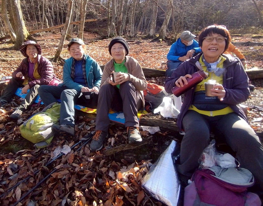 - 大垣労山会員どうしや、佐久山の会との交流がはかられ良かったです。準備に奔走していただいた事務局員をはじめ、会員の協力によって、楽しい忘年会山行となりました。