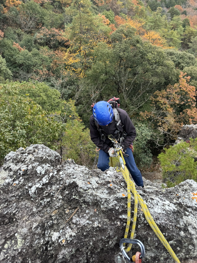 - 久しぶりのクライミングで、懸垂下降のセットがなかなかできない人もいたが、最後まで確認して下降器をマムートスマートアルパイン(オートロック機能付き)で降りて、2ルートトップロープで登った。